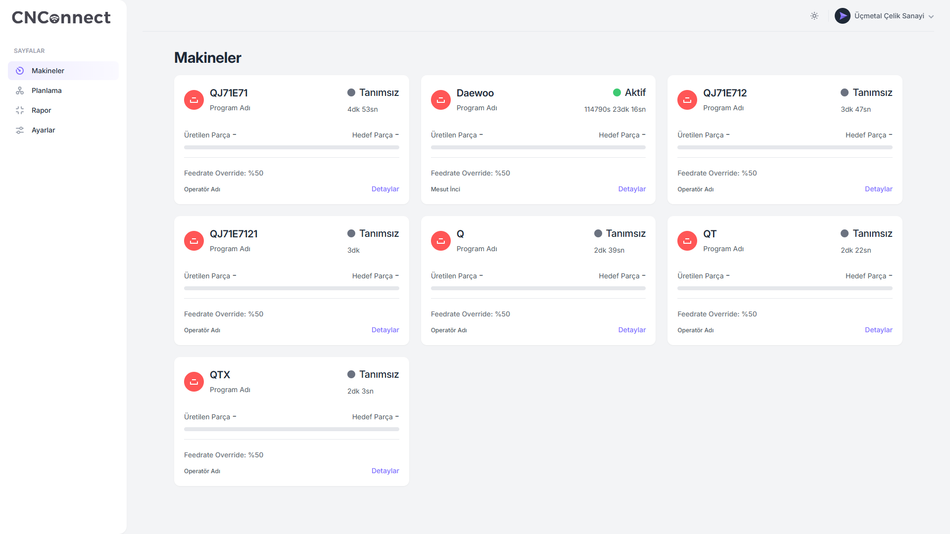 Tüm CNC makinelerinizi gerçek zamanlı olarak izleyin ve verimliliği artırın.